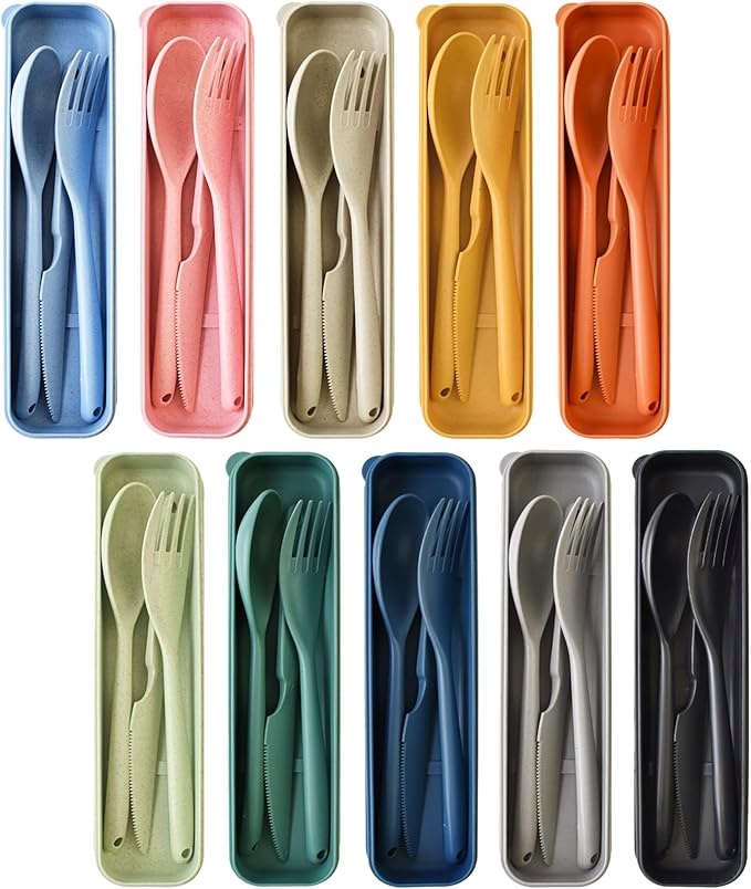 - Package Includes:10 set of portable cutlery, Each cutlery case set is included one fork, one spoon, and one knife.