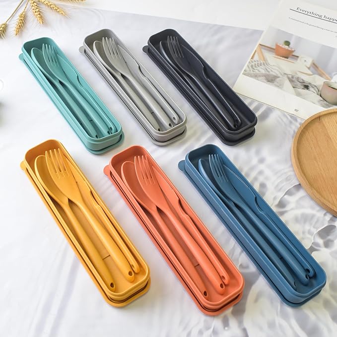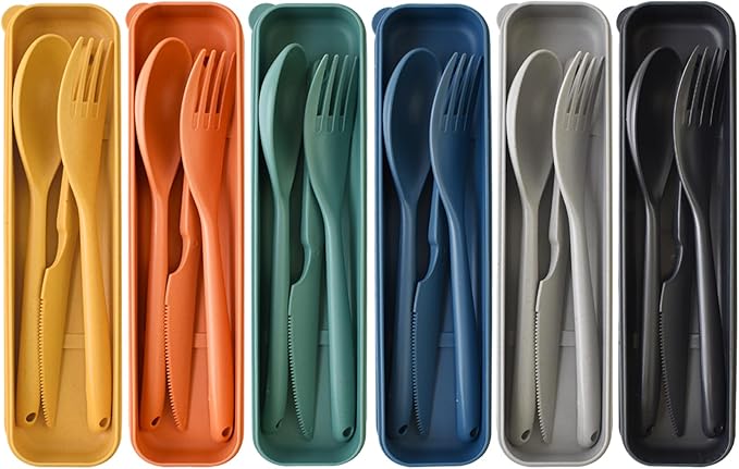 - Package Includes:6 set of portable cutlery, Each cutlery case set is included one fork, one spoon, and one knife.