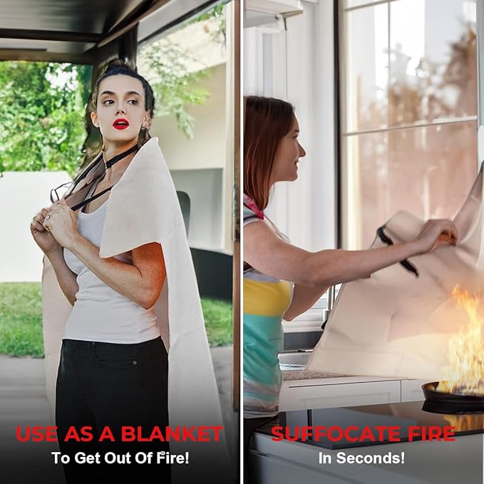 - 🔥【A SURVIVAL FIRE BLANKET FOR HOME】 Made of 100% high-quality flame retardant material, 40*40 inches, Designed as an essential home-safety fire blanket in emergency. Ideal for kitchen, fireplace, grill, BBQ, car, office, backyard, camping and so on.