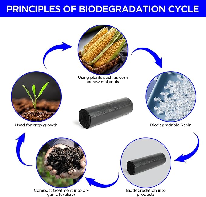 - Eco-Friendly Material: Crafted from high-quality degradable materials derived from corn and plants, these compostable bags are both durable and environmentally friendly.
