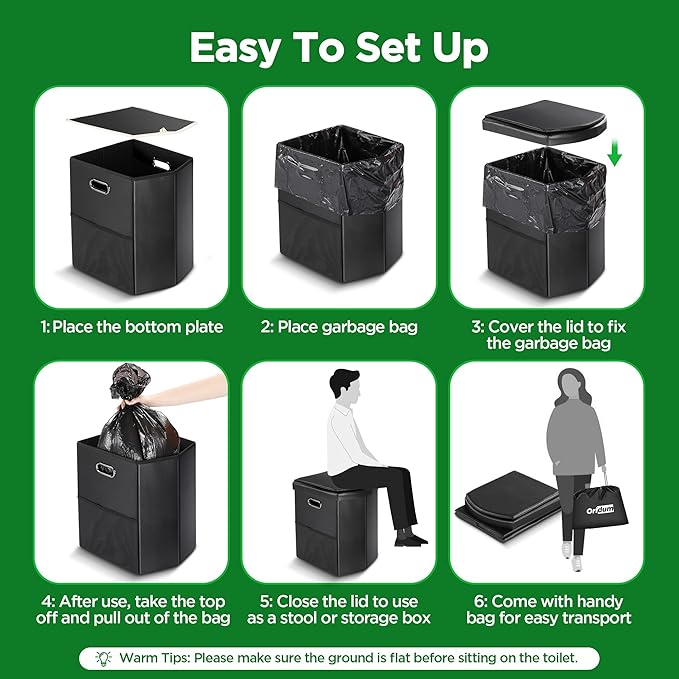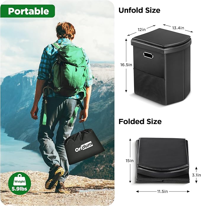 - 【Multifunctional Design】It's a super convenient toilet for camping, hiking, and road-tripping. As well as an emergency toilet for indoor use. It can also be used as a garbage can or a stool.