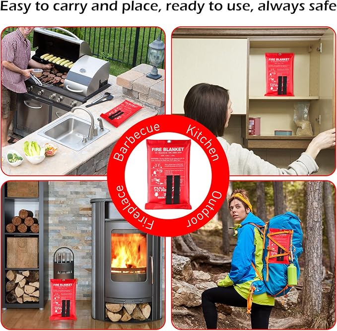 - 【Easy & Wide Use】Simply pull out the kitchen fire blanket, spread it out, slowly cover the fire with the blanket, and turn off the stove or any source of fire. Wait until the blanket suffocates the fire before removing it. The emergency prepared fire blanket for home is ideal for kitchens, barbecue grills, cars, offices, camping, and more, which is easy to store and carry with you wherever you go.