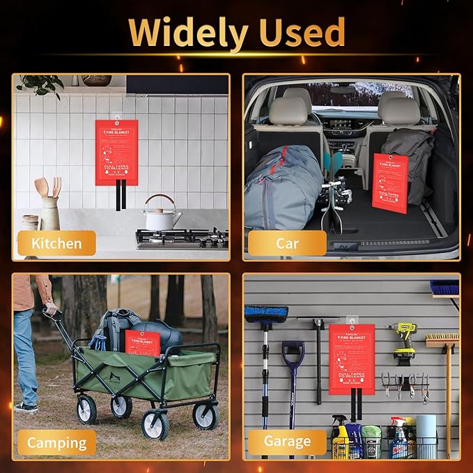 - Essential Home Safety Fire Blanket: Be prepared for emergencies with our fire blanket - perfect for kitchen, fireplace, grill, BBQ, car, office, backyard, and camping. Makes a great gift for friends and family