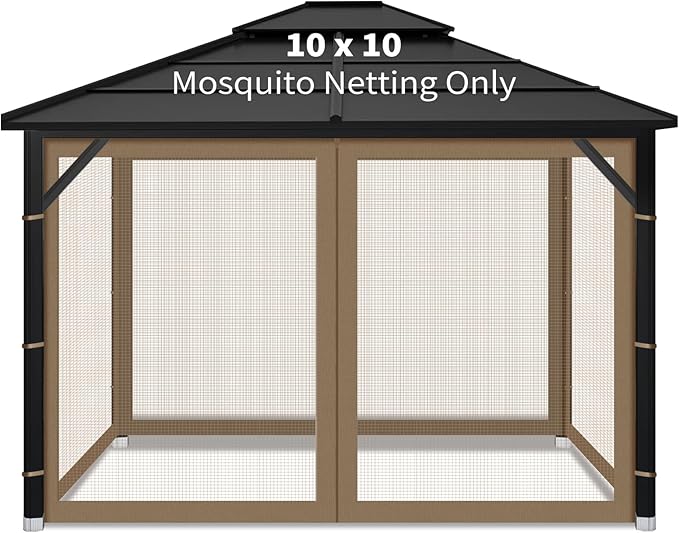 Gazebo Replacement Mosquito Netting Outdoor Universal Gazebo Canopy 4-Panels Screen Sidewalls with Zipper for Patio Garden (Brown, 10x10)