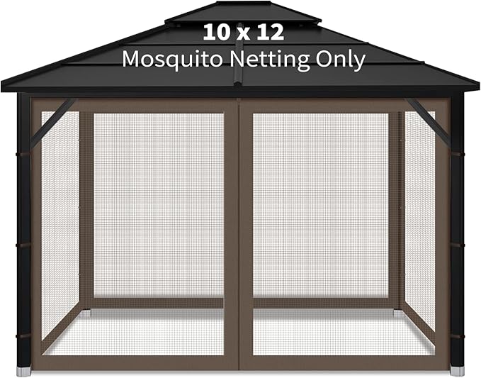 Gazebo Replacement Mosquito Netting Outdoor Universal Gazebo Canopy 4-Panels Screen Sidewalls with Zipper for Patio Garden (Coffee, 10x12)