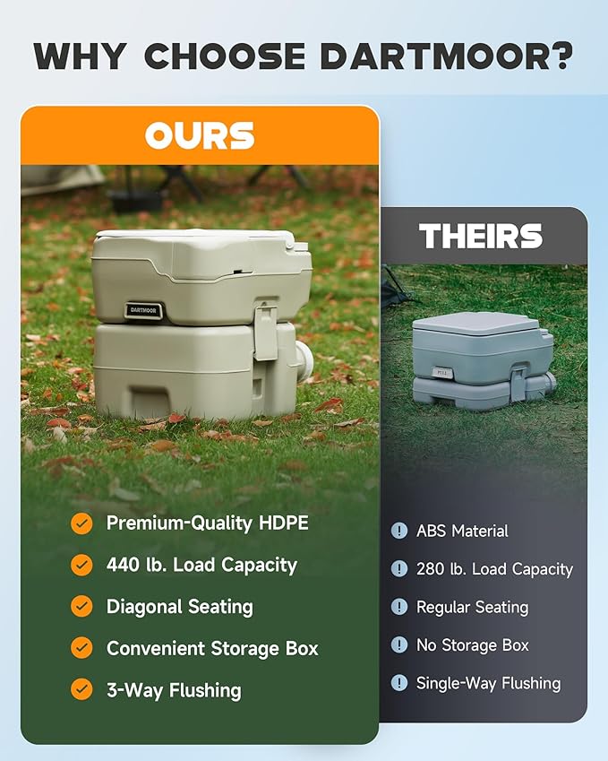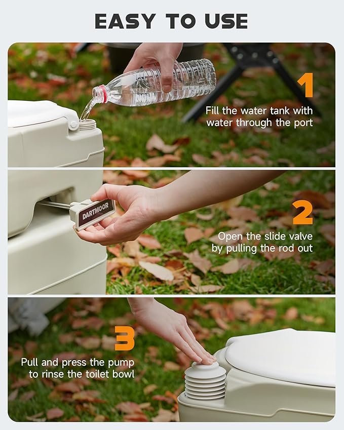 - 𝐘𝐨𝐮𝐫 𝐏𝐞𝐫𝐟𝐞𝐜𝐭 𝐎𝐮𝐭𝐝𝐨𝐨𝐫 𝐂𝐨𝐦𝐩𝐚𝐧𝐢𝐨𝐧: Whether camping, boating, enjoying picnics, or working on-site, Dartmoor's portable toilet makes outdoor activities comfortable and convenient. Weighing just 10.8 lb., it's easy to carry wherever you go.