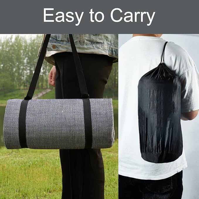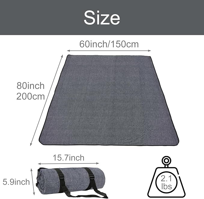 - LARGE SIZE AND FOLDABLE EASILY – This picnic blanket unfold size is about 60’’x80’’, which can fit 4-6 adults to sit, suitable for family use and together with several friends to outdoor activity. And packed size is about 14.5'' x 5.5'', portable and lightweight (about 1.89lbs) to carry out with STRAP and BAG. It is convenient to transport around to any destination.