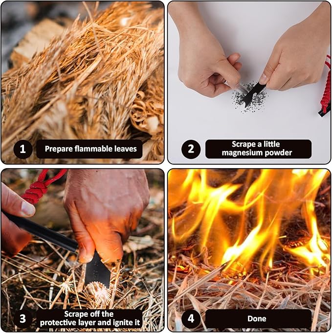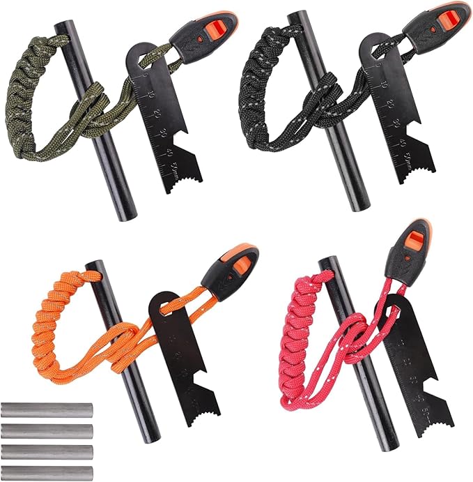 - 【What You Will Get】Each pack includes 4 fire starters, each with a differently colored handmade paracord, and 4 magnesium rods. This makes it a versatile option for various activities such as campfires, hiking, BBQs, and emergencies.