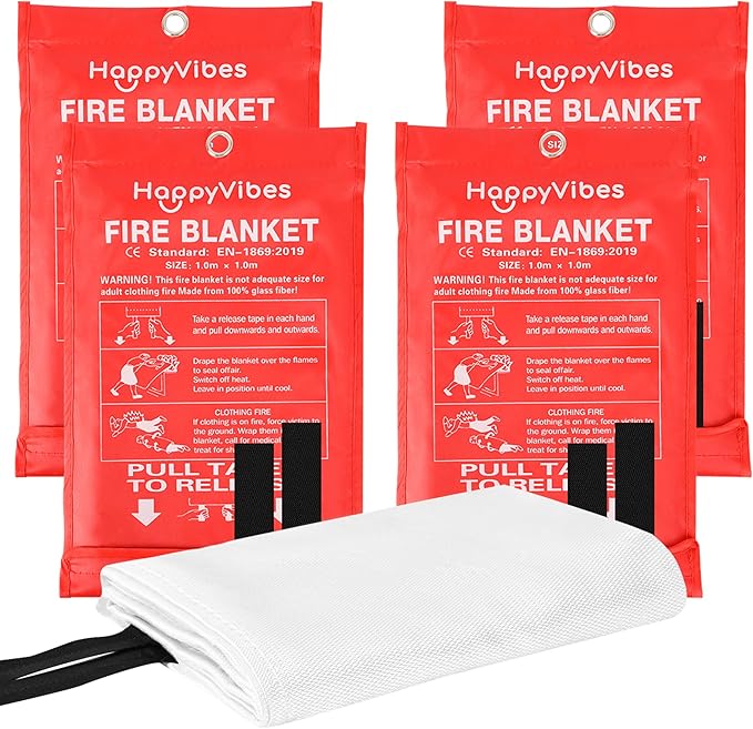 HappyVibes Emergency Fire Blanket for Home - 4 Pack Fiberglass Fire Extinguishing Blanket 40x40 Inches - Fire Blankets Emergency for Home, Kitchen, School, Office, Car, and Grill (Pack of 4)