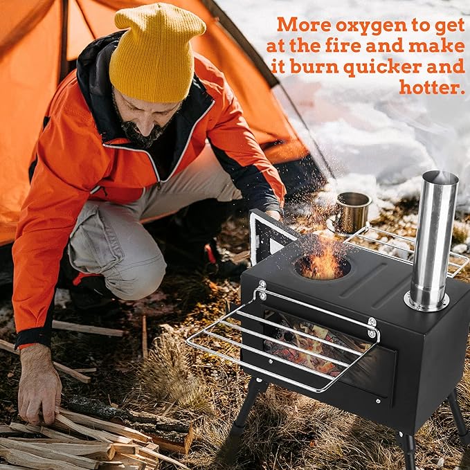 - 🍡【STRONG AND STABLE STRUCTURE】--Durable steel frame and high temperature resistant paint help for long time use and help resist harsh outdoor environment; Provide ample heating surface on top of stove, which helps to make delicious barbecue, To keep the marquee very warm in cold conditions, boil some water. Great for camping, backpacking, ice fishing and hunting trips.