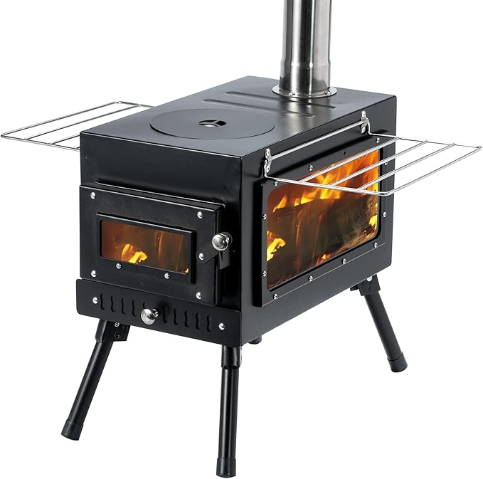Outdoor Camping Stove Camp Tent Stove, Portable Wood Burning Stove with Chimney Pipe for Tent, Shelter, Camping Heating and Cooking (Pipe Diameter: 2.95")
