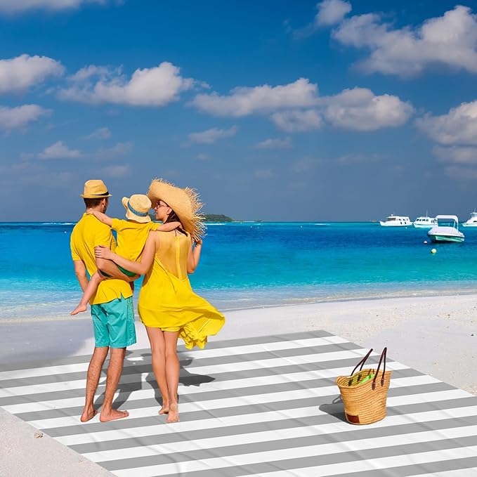 - Outdoor Versatility: Beyond the beach, these versatile outdoor blankets are perfect for travel, picnics, camping, and hiking. With eyecatching grey& white stripe design, you can quick spot these blankets, with a choice of modern minimalist style.
