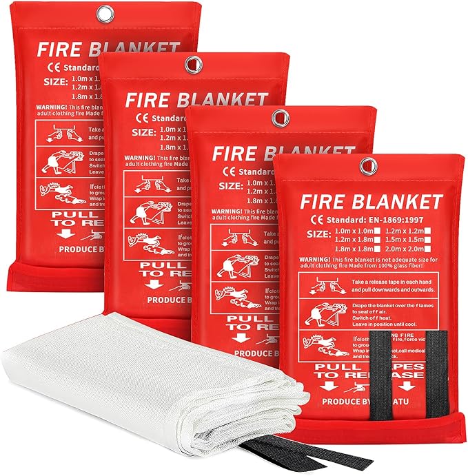 2024 Emergency Fire Blanket, 4 Pack Fire Extinguisher Blanket, Fire Suppression Blanket, Flame Retardant Blanket Fire Safety Blanket for Home, Kitchen, School, Grill, Car, Office, Warehouse(40” x40”)