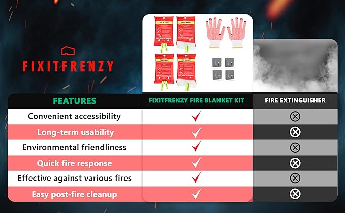 - ✅ QUICK FIRE SUPPRESSION: This emergency fire blanket can rapidly smother small fires, preventing further spread and damage through its flame retardant fiberglass material.
