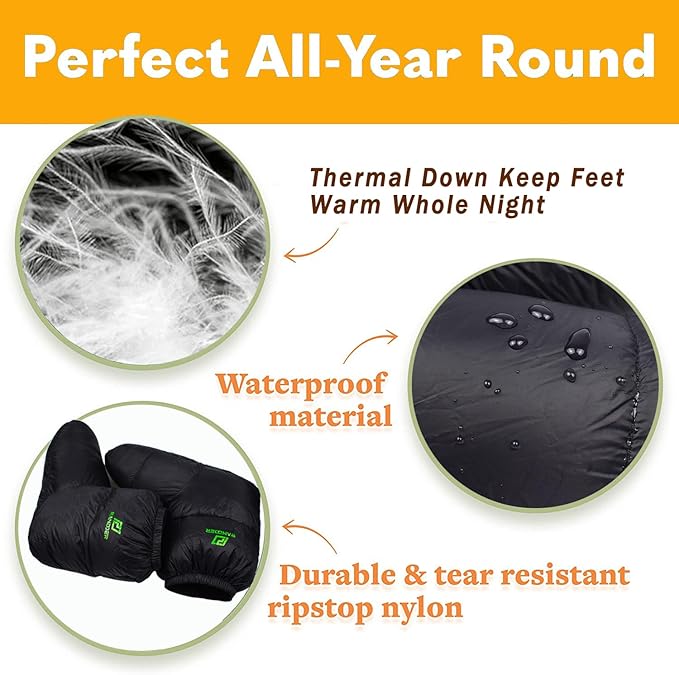- UNIQUE DESIGN: Easily Put On and Take Off. The Sleeping Booties Is Trusted By The Worlds Leading Campers. Great for Backpacking Camsite and Camping Trips.