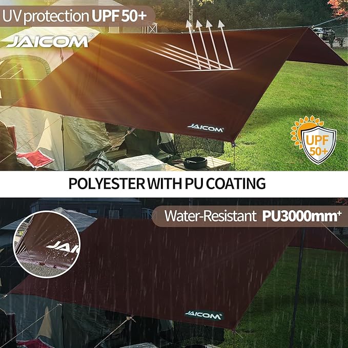 - Best protection: The JAICOM Camping Tarp is made from 210T tear-resistant polyester fabric that is highly abrasion resistant. The seams are all press-glued and the fabric has a waterproof coating, making our tarp highly waterproof. It gives you strong protection no matter how extreme the weather is