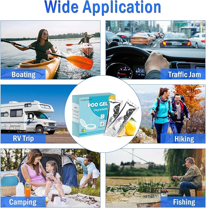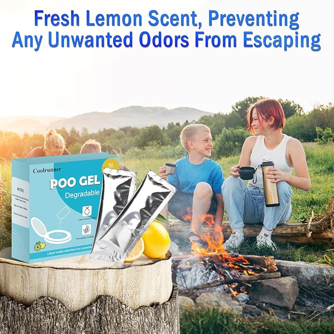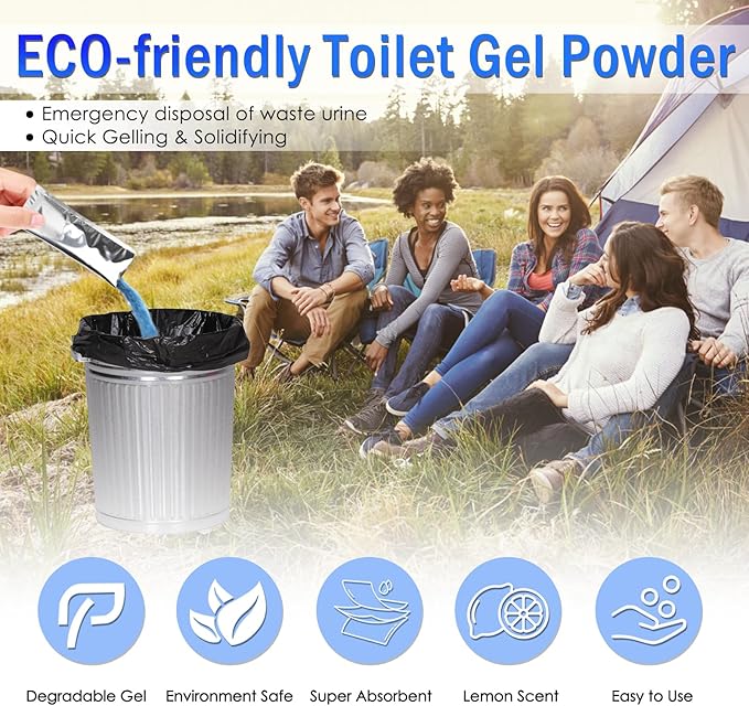 - 【Wide Application】The Poo absorbent gel powder features a pleasant lemongrass scent to help eliminate odors without the use of harsh chemicals, very suitable for travel, hiking, boating, camping, fishing, beach, RV trip, and other outdoor activities. The absorbent powder packet serves as one of the camping essentials.
