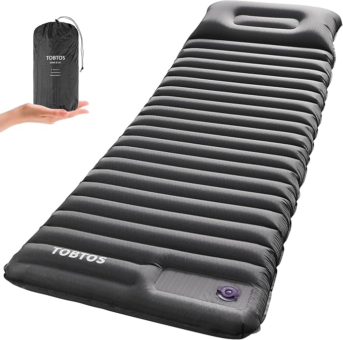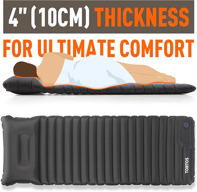 TOBTOS Inflatable Sleeping Pad for Camping with Pillow, 4" Thick Camping Mat with Built-in Foot Pump, Compact Air Mattress for Camping, Hiking, Backpacking (Grey)