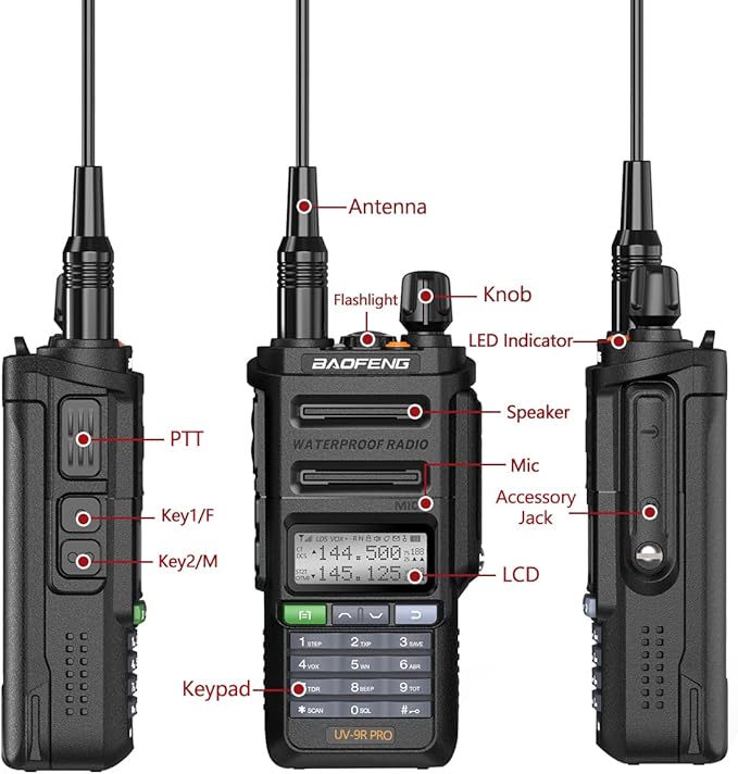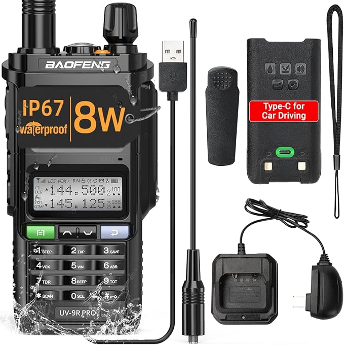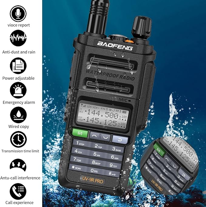 - IP67 Waterproof Features:9R Plus upgrade version,The Two Way Radio with better waterproof and dustproof capabilities(Not diving),and can meet the needs of outdoor sports,camping,mountaineering etc in the bad weather,which ensures the reliability of the walkie-talkie in wet environments; FFC ID: 2AJGM-UV9RPRO