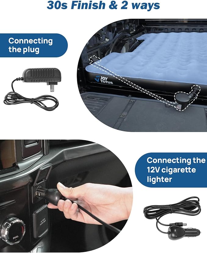 - 【Quick Inflation】: Inflate your mattress effortlessly with our two-in-one car air pump, which includes both a standard plug and a cigarette lighter adapter. It fills quickly and maintains air well for a comfortable night’s sleep.