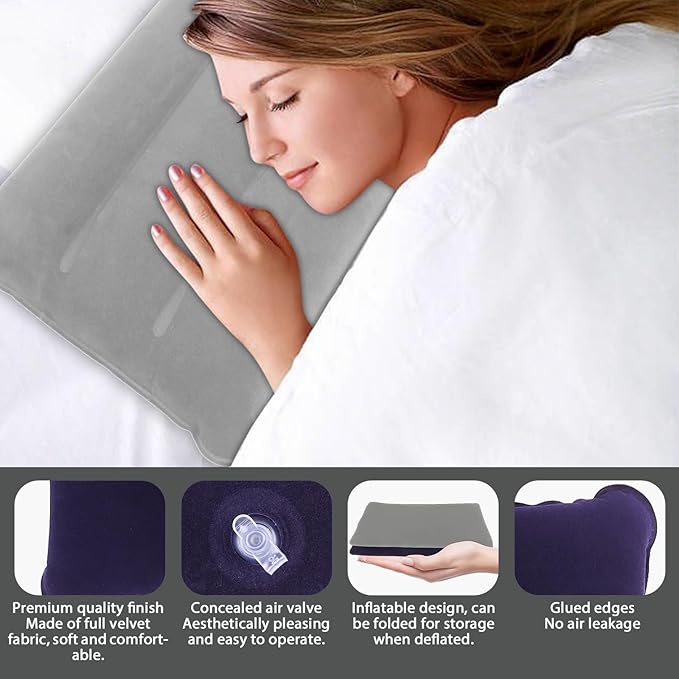 - 💪💦 𝐄𝐀𝐒𝐘 𝐓𝐎 𝐂𝐋𝐄𝐀𝐍: 💪💦 inflatable pillow for traveling designed for rugged outdoor environments! This inflatable pillow for camping is made with cleanliness in mind, and with a simple wipe or gentle rinse, it's ready for more trips and provides lasting comfort for countless adventures.