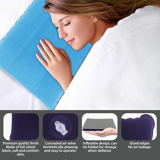 - 💪💦 𝐄𝐀𝐒𝐘 𝐓𝐎 𝐂𝐋𝐄𝐀𝐍: 💪💦 inflatable pillow for traveling designed for rugged outdoor environments! This inflatable pillow for camping is made with cleanliness in mind, and with a simple wipe or gentle rinse, it's ready for more trips and provides lasting comfort for countless adventures.