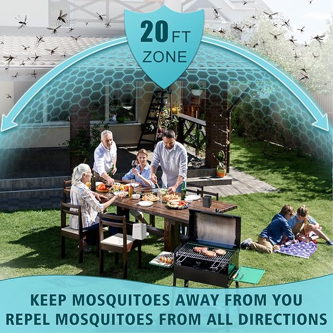 - 【KEEP MOSQUITOES AWAY】Our Rechargeable Mosquito Repeller creates a 20-foot mosquito protection zone.Perfect for the patio, backyard, poolside, decks, porches, camping and more.( Before use please carefully read the instructions and Precautions)