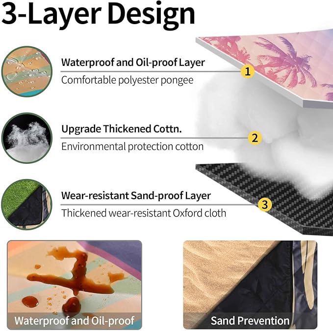 - 【Three-layer Structure】 We understand the importance of comfort and moisture resistance for outdoor activities. Therefore, the picnic mat adopts a three-layer design: the top layer is waterproof, the middle layer is soft cotton, and the bottom layer is also waterproof. This structure not only ensures the comfort of the cushion but also provides moisture resistance, allowing you to always enjoy a dry and comfortable sitting posture.