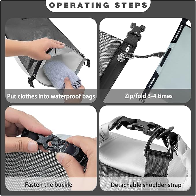 - 117g Truly Ultralight - Ultralight Dry Bag Large Set includs 4L, 8L and quick-adjust nylon shoulder strap, Lightweight materials keep the total sacks weight is only 117g(0.25lb), Comfortable and easy to carry.