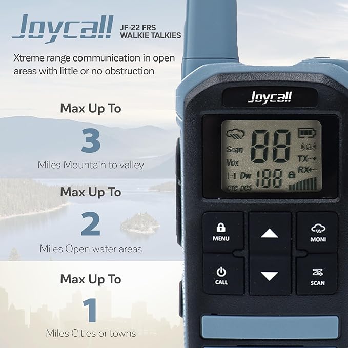 - (📡 Long Range Communication): Joycall two-way radios offer up to 5km range in open areas like plains and coastal regions, with no license required. VOX functionality allows hands-free use, making it perfect for users of all ages.