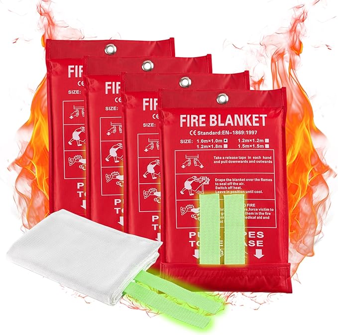 Emergency Fire Blankets, Fire Extinguisher Blanket Glow at Night, Flame Retardant Blanket Fire Safety Blanket for Home and Kitchen, Camping, Grill, Car, Office (4 Pack)