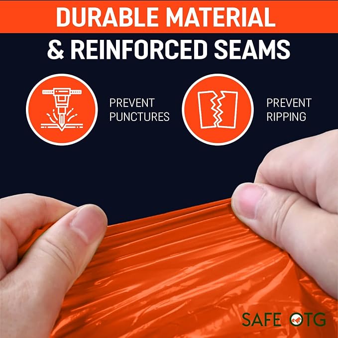 - Many Uses: The orange color ensures high visibility, while the inside silver color offers reflective and heat properties. Its versatile design makes it ideal for your survival kit, survival gear, hiking gear, sleeping bag, earthquake kit, bug out bag, or car emergency kit, so you’re always prepared!