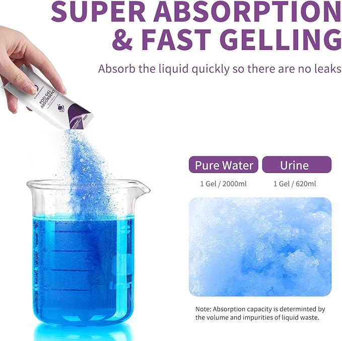 - 【Easy to Use 】You can pour one poo absorbent gel into a portable toilet bag, then put in the waste liquid (You can also put in the waste liquid first) and wait about 1-2 minutes for the liquid waste to solidify. Then Dispose of it properly after the gel have solidified.