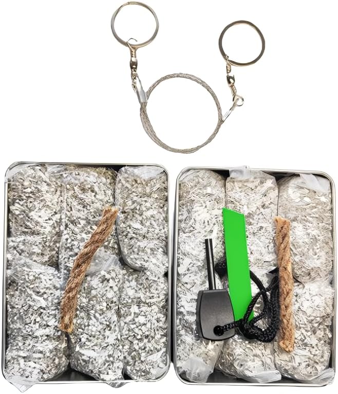 - Included Components : Tin Can, Magnesium, Wax ropes, Ferro Rod, striker, Saw Wire
