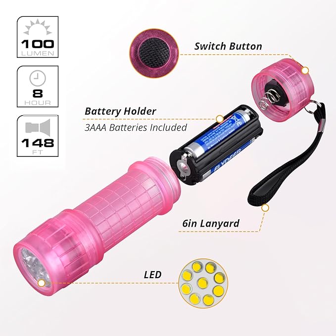 - 【Great mini flashlight for kids】Its stylish design and safe texture make it a unique and practical gift. After the party, it serves as a convenient light source for participants, being compact and portable. This flashlight adds excitement to the party, providing an additional source of joy.