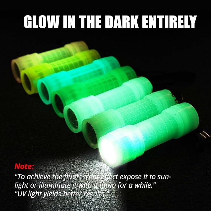 - 【Glow in Dark 】The small flashlights handle can fluoresce in the dark. It is recommended to put it in the sun or shine the light of a flashlight on the handle for a few minutes to activate the glow in dark function after receiving them.