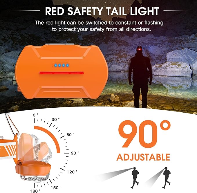 - Special Feature : Adjustable Headband, 12 Lighting Modes, White Light & Red Light, 90°Pivotable Head, Red Safety Warning Light Adjustable Headband, 12 Lighting Modes, White Light & Red Light, 90°Pivotable Head, Red Safety Warning Light