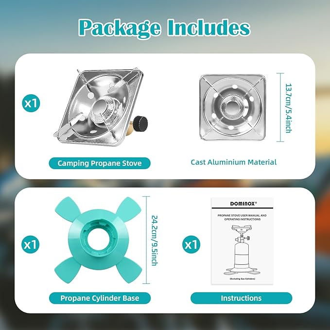 - 🔥【CSA Certified Propane Camp Stove 】👉DOMINOX portable backpacking stove has been certified by CSA, ensuring the reliability of quality and safety of use, and can be purchased and used with confidence. In addition, we provide a 3-year after-sales warranty service. If you encounter any quality problems within 3 years of receiving our camping propane stove, please feel free to contact our team at any time. Propane tank not included.