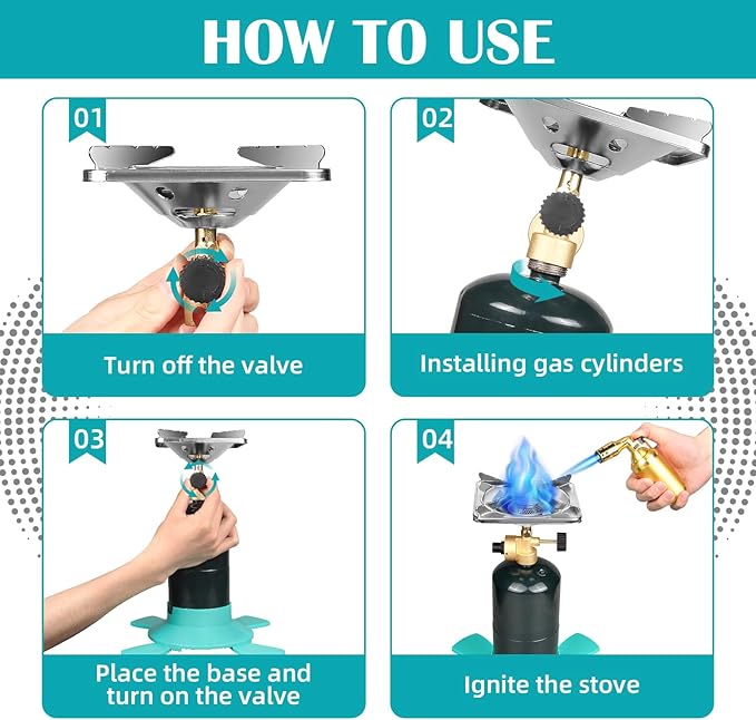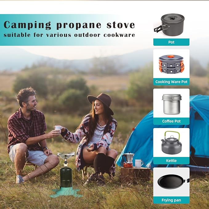 - 🔥【Camping Stove Packaging Includes】👉Propane camping stove x 1, gas cylinder base x 1, instructions x 1, (Note: Propane tank not included).