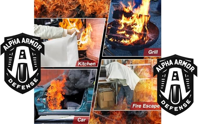 - 🚒🔥👨🏻🚒 ✅ Essential for Every Household: A crucial item for home safety, the Alpha Armor Defense Fire Blanket is perfect for kitchens, garages, grills, and as part of your camping or vehicle survival kit. It provides peace of mind, akin to having a fire extinguisher for business or fire extinguisher for car at hand.
