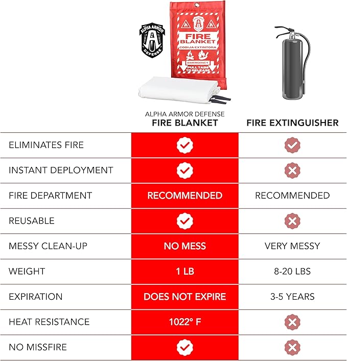 - 🚒🔥👨🏻🚒 ✅ Essential for Every Household: A crucial item for home safety, the Alpha Armor Defense Fire Blanket is perfect for kitchens, garages, grills, and as part of your camping or vehicle survival kit. It provides peace of mind, akin to having a fire extinguisher for business or fire extinguisher for car at hand.