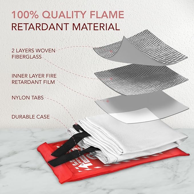 - 🚒🔥👨🏻🚒 ✅ Durable and High-Temperature Resistant: Crafted with premium, flame-retardant woven fiberglass cloth, this fire blanket withstands extreme temperatures up to 1076°F (580°C). It's a resilient hero blanket, adhering to CE safety standards and outperforming many small fire extinguishers in durability.