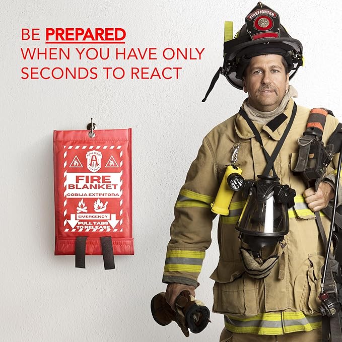 - 🚒🔥👨🏻🚒 ✅ Compact and Easy to Use: Designed for simplicity, our fire blanket can be quickly deployed by pulling down tabs, making it user-friendly and more efficient than traditional fire extinguishers for the house and the speed of deployment can be faster than a kidde fire extinguisher for home use.
