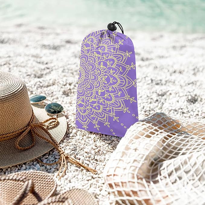 - 【Waterproof, Sandproof, Quick-Dry】Our sand-free beach blanket is made of the 210T polyester which is resistant, breathable, waterproof and lightweight. The sand will not stick on it, you can easily get rid of the sand and water drops by shaking the purple mandala beach mat lightly. perfect for your summer vacation trip