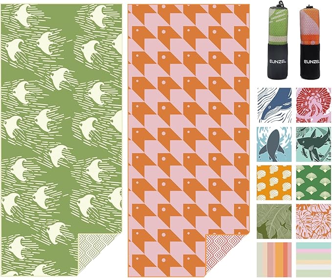 - SAND FREE: The microfiber beach towels are sand-free, as sand cannot stick to microfiber. Simply give it a shake to remove any sand, keeping your belongings, car, and home free from sand and clean. Perfect for use at the beach, pool, travel,fitness or camping
