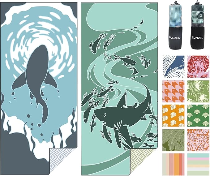 Eunzel 2 Pack Microfiber Beach Towel, Quick Dry Travel Towel Large Sand Free Towel for Beach, Camping, Swim Pool, Gym, Sports& Yoga 71"x32", Shark