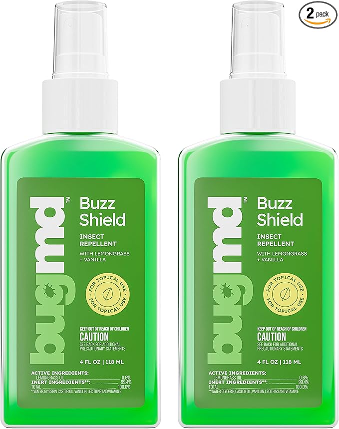 BugMD Buzz Shield (2-Pack) - Mosquito Repellent Outdoor Spray for Body, Insect Repellent, Tick Repellent for People, DEET Free Bug Spray, Mosquito Repellent Spray, Bug Spray