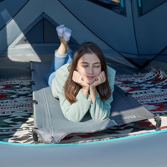 - NO ASSEMBLY REQUIRED: Designed with all-in-one sturdy frame, all parts are pre-attached and already in place, just pull a single zipper to set up this camping cots for adults within 20s. It is a breeze to set up.