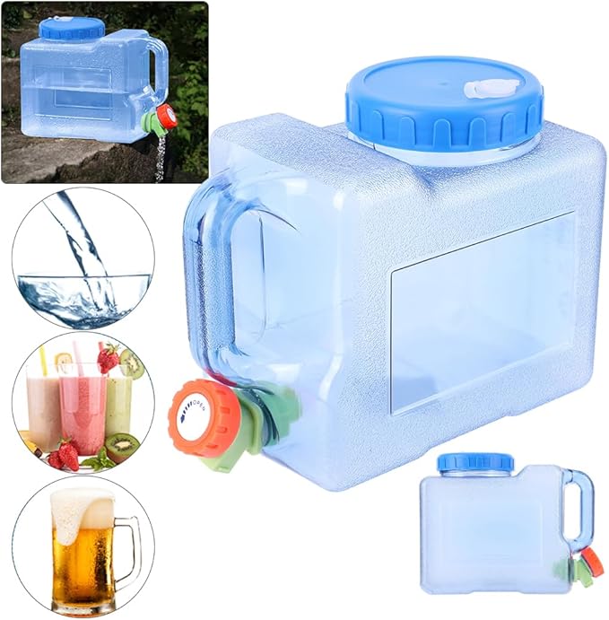 • 💧【Unique faucet design】These Water Storage Containers use a unique faucet design to easily carry water and prevent leakage. The detachable faucet can be replaced with a sealing cover to achieve better sealing performance. The water output of the faucet is large, and the knob can freely control the water volume.