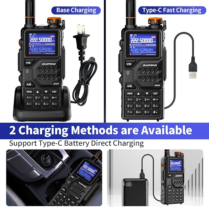 BAOFENG K5PLUS Tri-Band Ham Radio Long Range Walkie Talkies High Power Two-Way Radio with One Touch Frequency Finder Button, USB-C Charging, Color Large Screen Display, NOAA Weather, 999CH